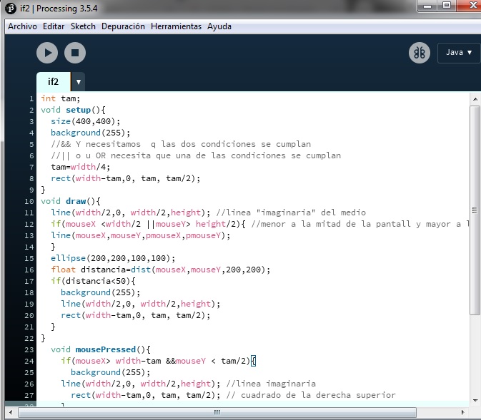 Para realizar este ejercicio se delimitó con condicionales áreas presionables que borran las líneas que uno dibuja con el mouse y una área en la que el mouse no puede dibujar.