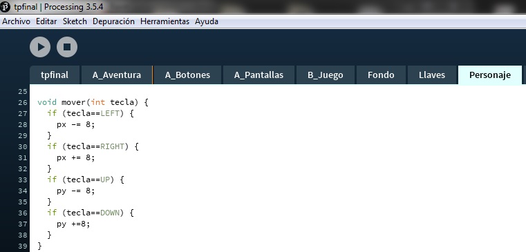 En el programa principal de la aventura se trató de dejar lo más "limpia" posible la pestaña y se cargó: