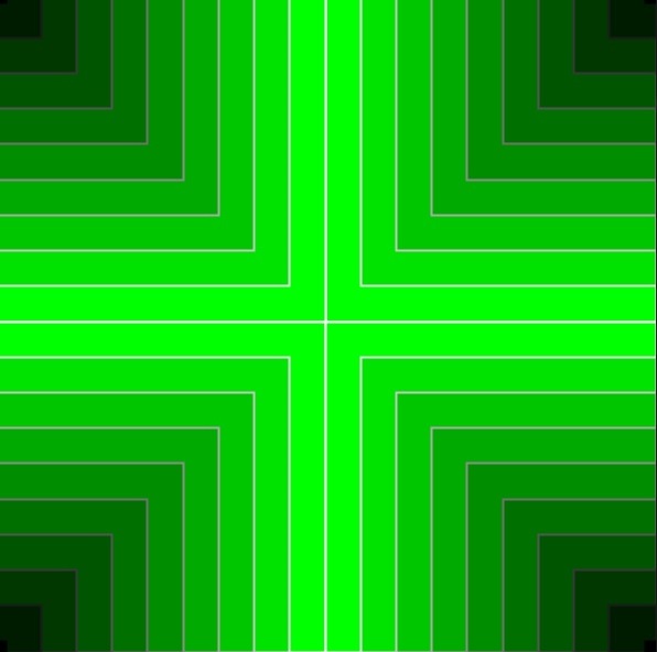 Realizado con un solo ciclo for de 10 repeticiones que ejecutan 4 funciones rect() y uso de map().